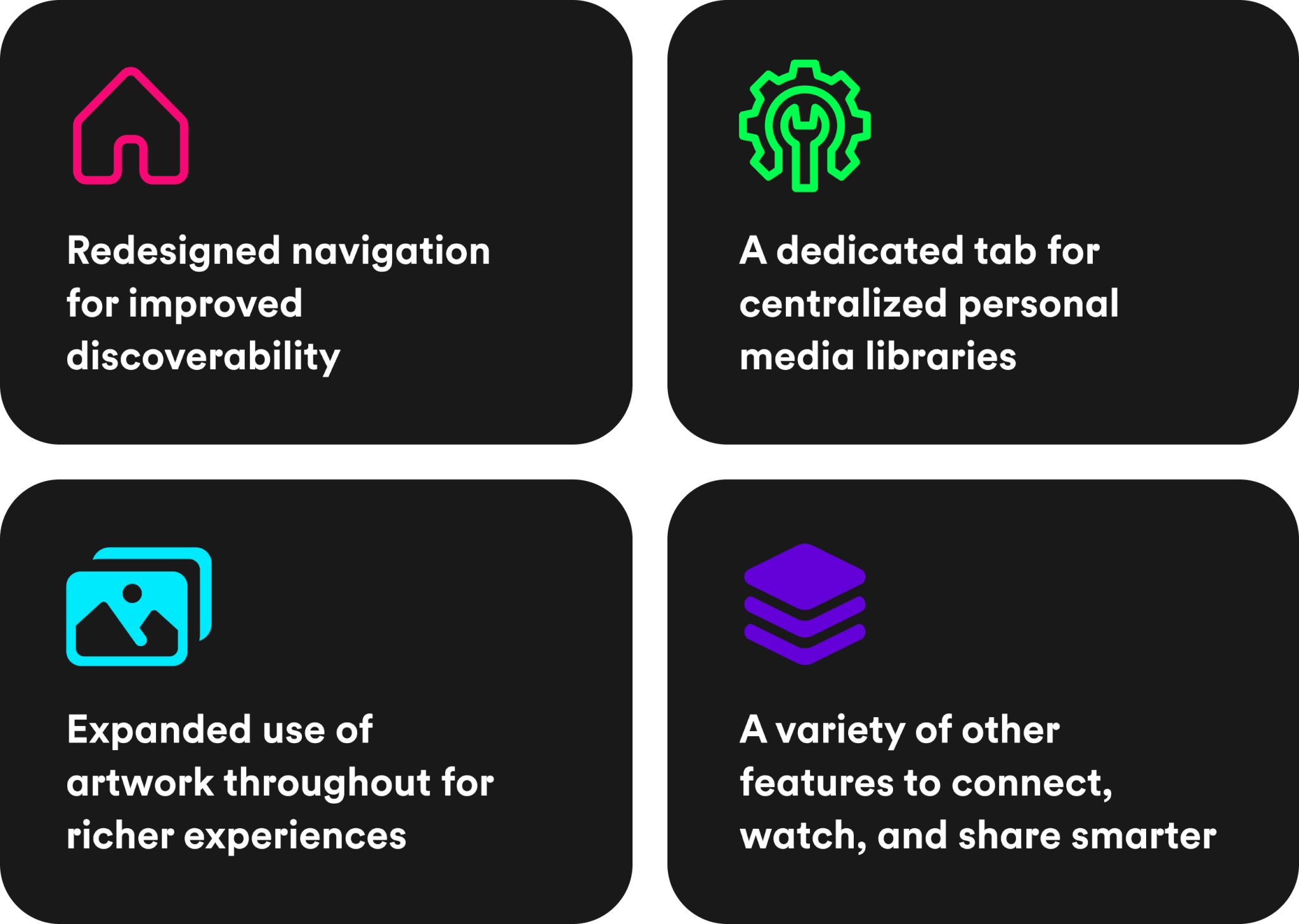 Our mission at Plex is to create a global community where everyone can discover, experience, and share all of the entertainment that matters to them. This rebuilt experience is just another way we’re staying true to our mission. Here’s what you can expect when you open the updated Plex experience on mobile: